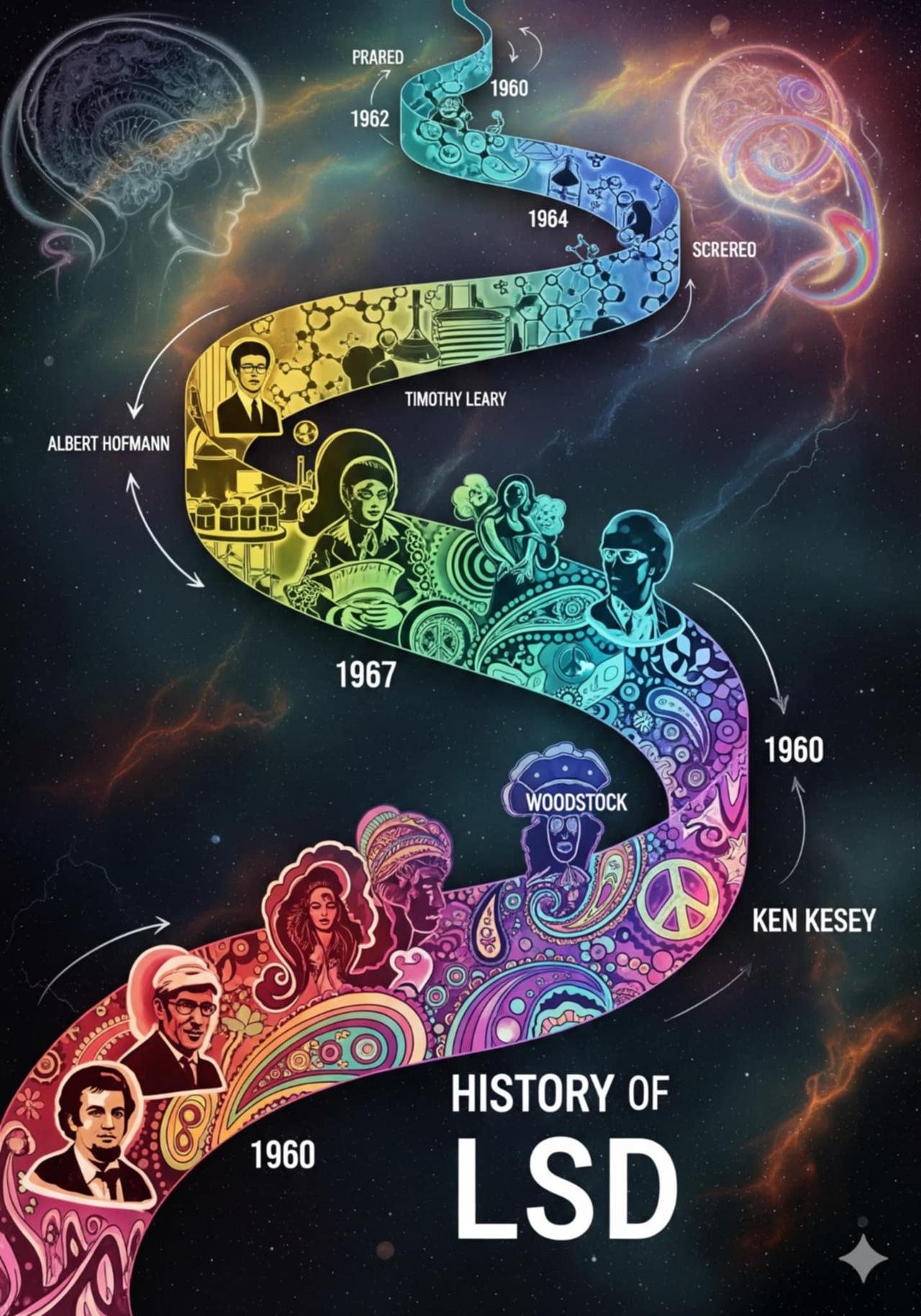 ในห้องทดลองอันสงบเงียบของบริษัทยา Sandoz ที่บาเซิล ประเทศสวิตเซอร์แลนด์ นักเคมีหนุ่มชื่อ อัลเบิร์ต ฮอฟมันน์ (Albert Hofmann) กำลังค้นคว้ายาใหม่สำหรับการกระตุ้นการคลอดและรักษาความผิดปกติของหลอดเลือด เขาสังเคราะห์โมเลกุลเล็ก ๆ ที่ชื่อ Lysergic Acid Diethylamide-25 หรือ LSD-25 ออกมาโดยไม่ได้ตั้งใจ ไม่มีใคร—including ฮอฟมันน์เอง—รู้เลยว่านี่คือการกำเนิดหนึ่งในสารที่ทรงอิทธิพลที่สุดของศตวรรษที่ 20 [Nichols, 2016; Hofmann, 1980].