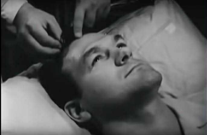 ภาพนี้เป็นฉากหนึ่งจากภาพยนตร์สารคดีเรื่อง "LSD-25" ซึ่งถูกถ่ายทำในปี 1966 โดยแสดงให้เห็นการทดลองที่ผู้เข้าร่วมกำลังถูกฉีดสาร LSD เข้าที่ขมับ เพื่อศึกษาปฏิกิริยาและผลกระทบของสาร