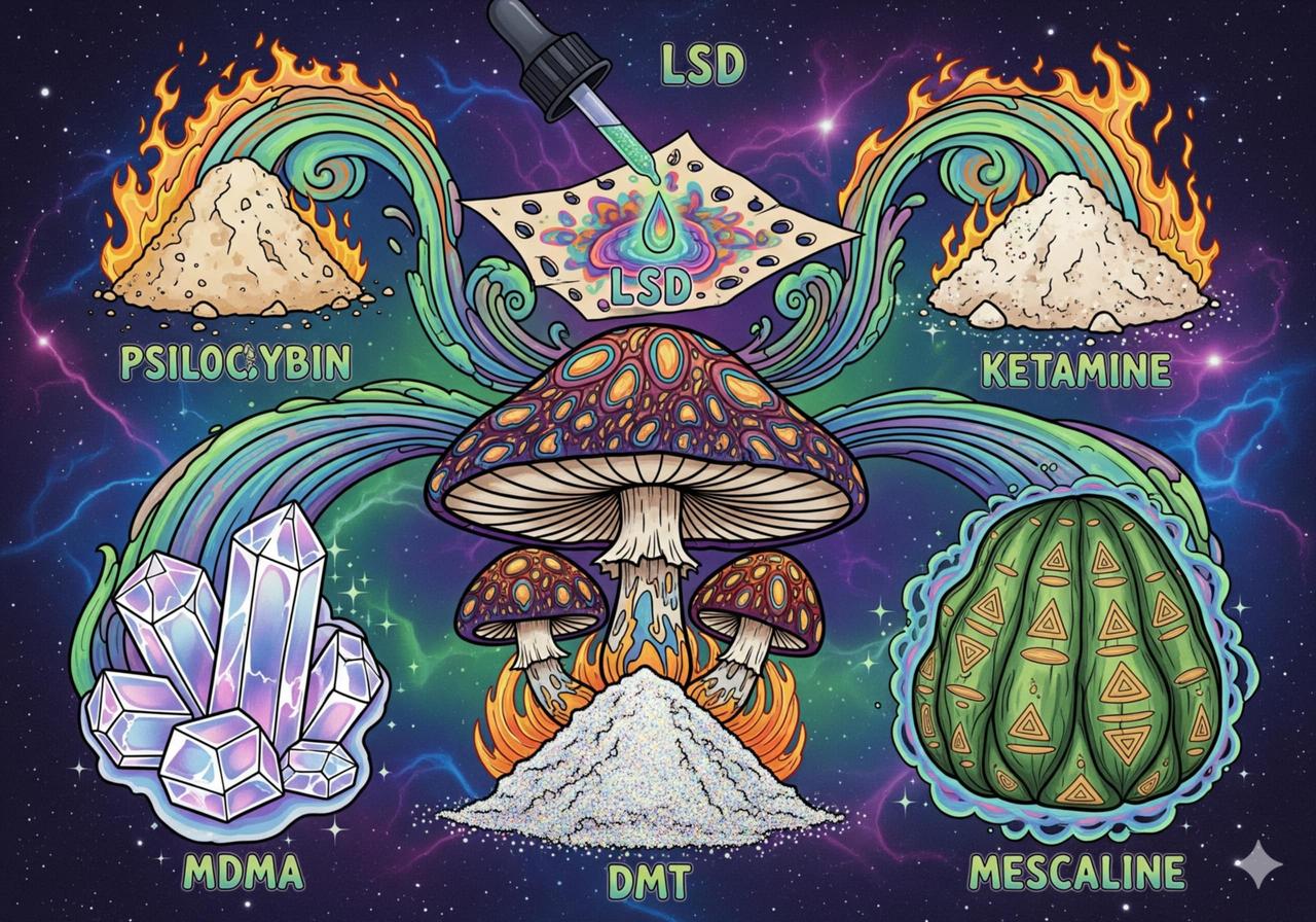 “Psychedelic” หมายถึงกลุ่มสารที่ก่อให้เกิดการเปลี่ยนแปลงอย่างลึกซึ้งใน การรับรู้ (perception), อารมณ์ (mood) และ กระบวนการคิด (cognition) ของมนุษย์ โดยเฉพาะกลุ่มที่เรียกว่า classic serotonergic psychedelics ซึ่งออกฤทธิ์เป็นตัวกระตุ้นหรือตัวแอนาไลต์ต่อตัวรับซีโรโทนินชนิด 5-HT2A ในสมอง สารกลุ่มนี้โดยทั่วไปถือว่ามีความเป็นพิษทางกายต่ำและมีศักยภาพกระตุ้นประสบการณ์เชิงจิตวิญญาณและการเปลี่ยนมุมมองทางจิตใจได้อย่างชัดเจน — นี่คือชุดความจริงพื้นฐานที่งานสังเคราะห์วิชาการยอมรับกันในวงกว้าง. PubMed