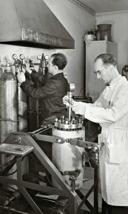 ทั้งสี่ภาพนี้เป็นภาพของ อัลเบิร์ต ฮอฟมันน์ และทีม นักเคมีชาวสวิส ผู้ที่ได้ชื่อว่าเป็น "บิดาแห่ง LSD" ขณะที่เขากำลังปฏิบัติงานวิจัยในห้องแล็บของบริษัท Sandoz Chemical Works ซึ่งเป็นสถานที่ที่เขาค้นพบและสังเคราะห์สาร LSD ขึ้นเป็นครั้งแรกในปี ค.ศ. 1938 และค้นพบฤทธิ์ทางจิตโดยบังเอิญในปี ค.ศ. 1943